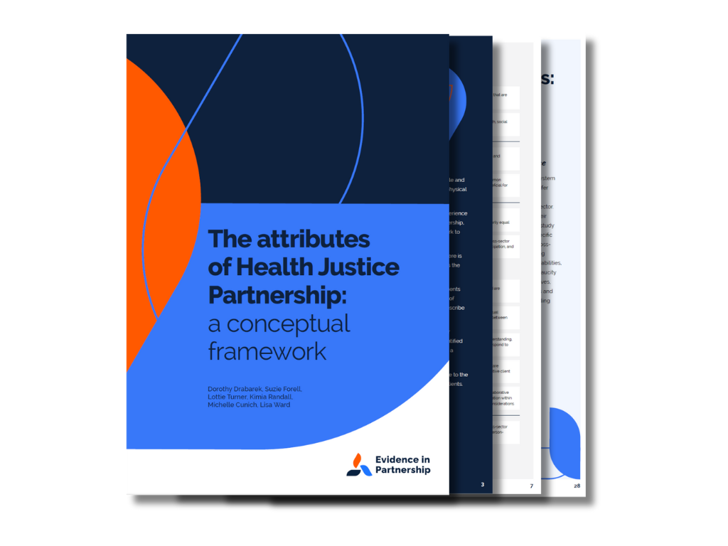 The Attributes of Health Justice Partnership: a conceptual framework is the product of the scoping stage of the Evidence in Partnership project, currently underway as a collaboration between Health Justice Australia and 11 health justice partnerships in NSW and Victoria.